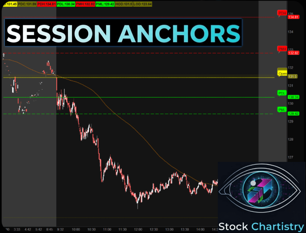 Track anchored price levels from major market sessions to reveal institutional price memory.